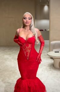 Fustani i saj elegant dhe tërheqës, i cili ishte i ngushtë dhe i përshtatur, ka nxjerrë në pah format që fansat i kanë cilësuar si “atraktive”. Kjo paraqitje ka qenë një dëshmi e stilit të saj të veçantë dhe tërheqës.